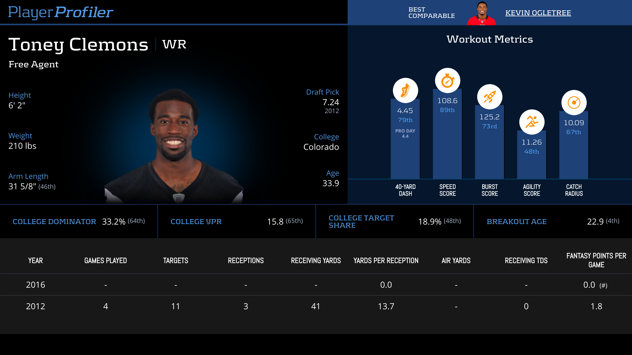 | Year Year | Games Games | Receptions Recs | Receiving Yards Rec Yds | Target Share Tgt Share | Catch Rate Catch Rate | Receiving Touchdowns Rec TDs | Special Teams Yards Special Teams | Age Age | School School |