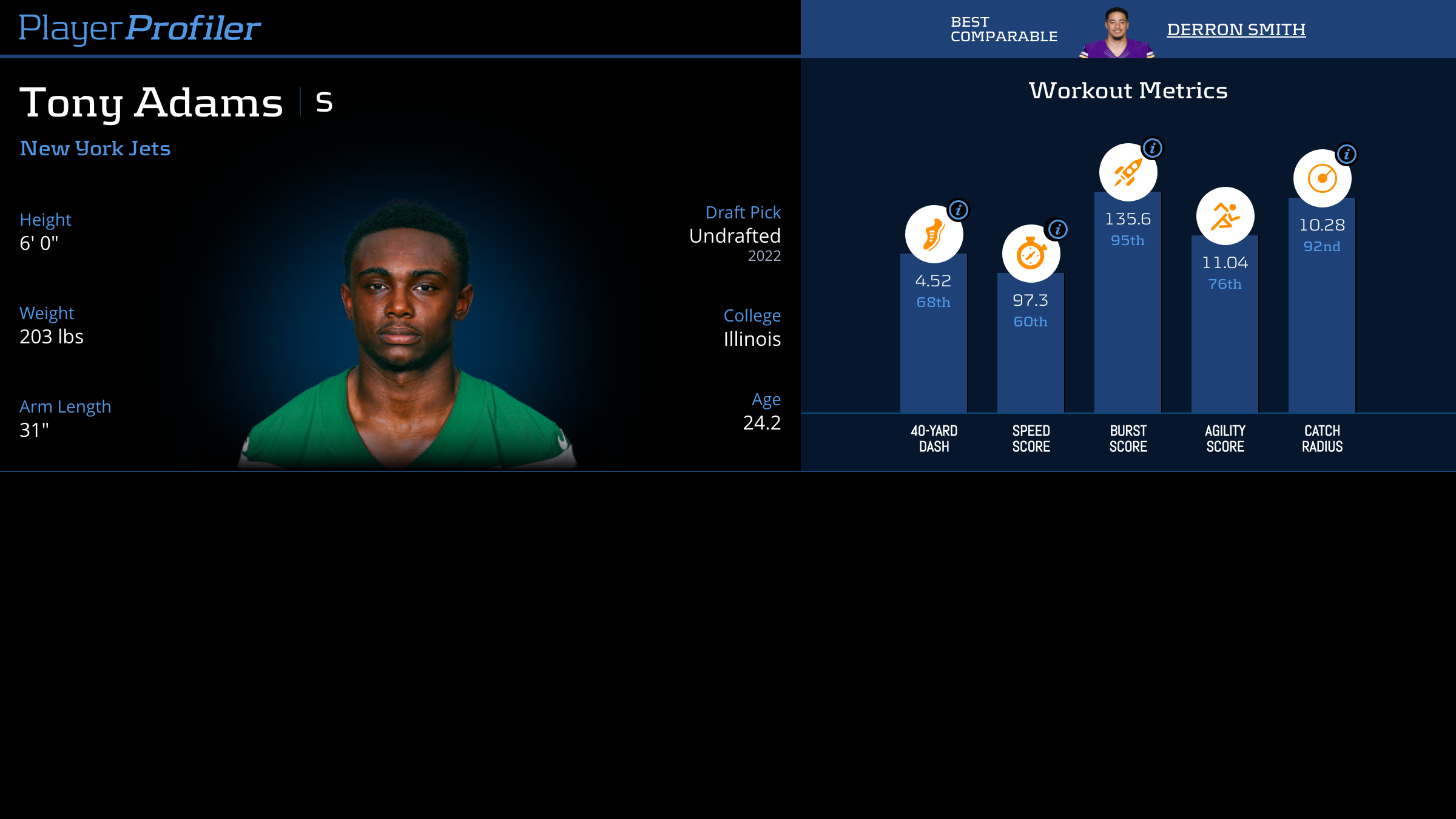 Download all Tony Adams advanced stats and metrics with Data Analysis.