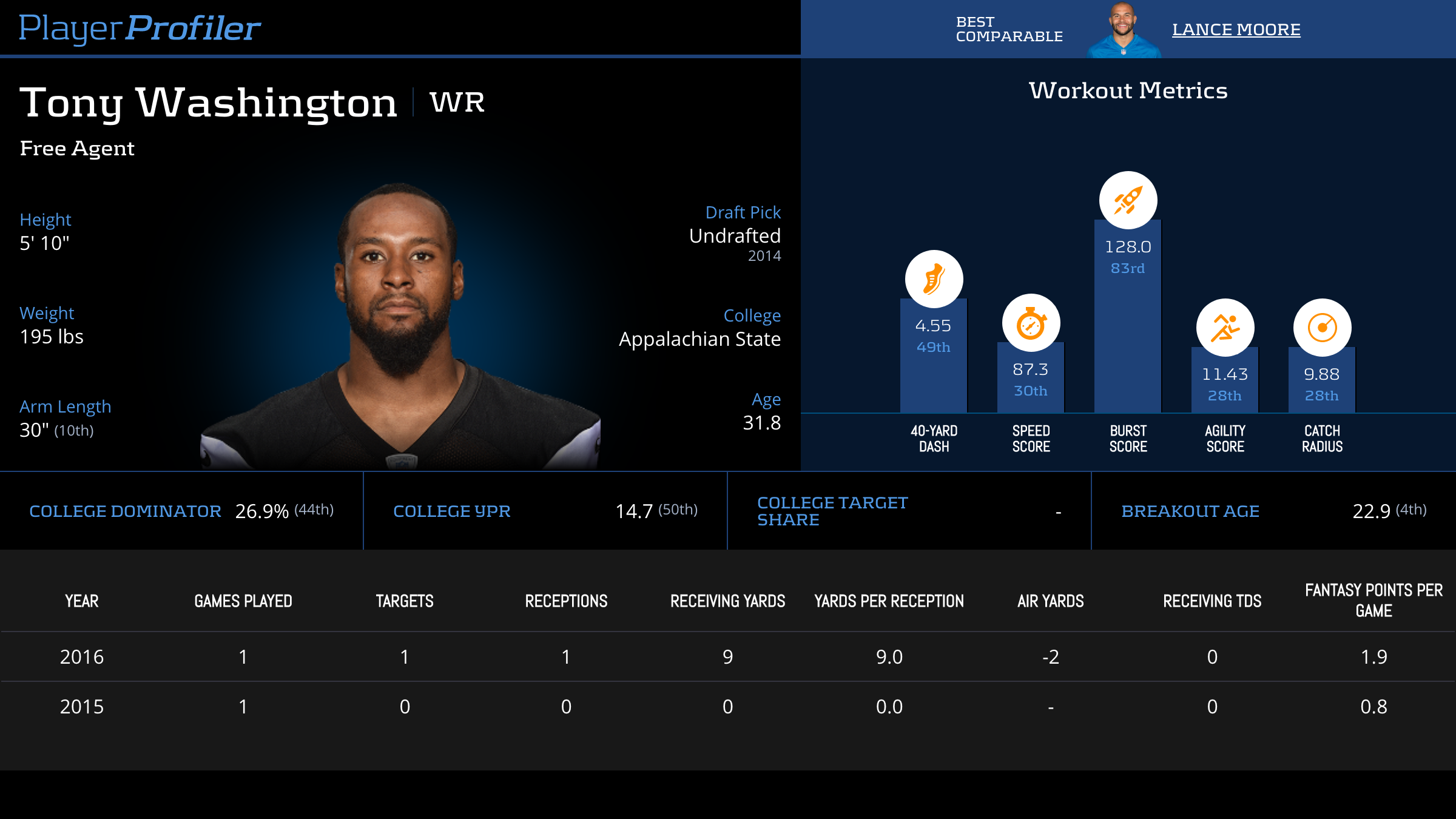 Tony Washington Advanced Stats & Metrics