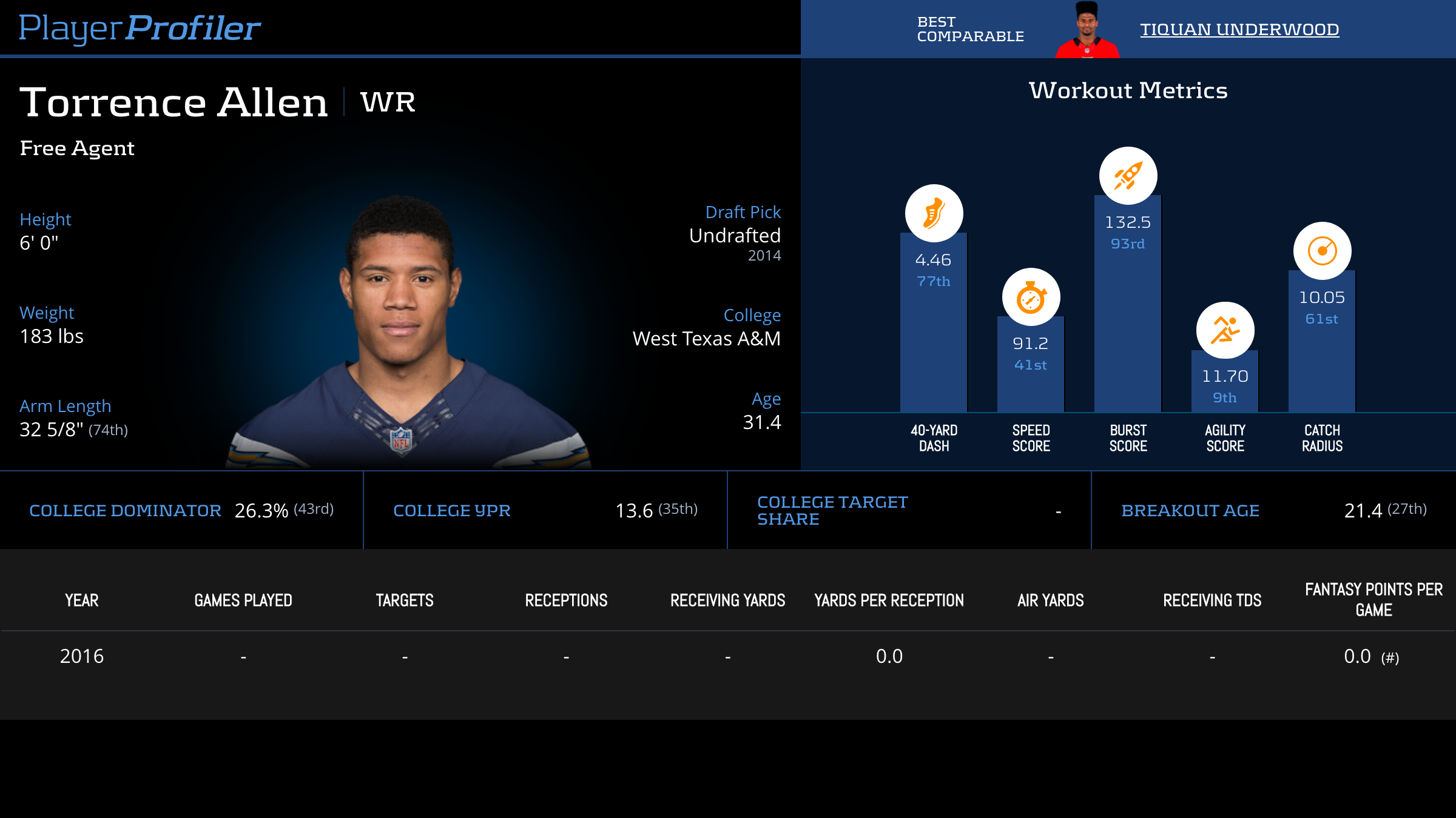 Year Games Tgts Rec Rec Yds YPR Air Yds Rec TD Fantasy Pts/Game
