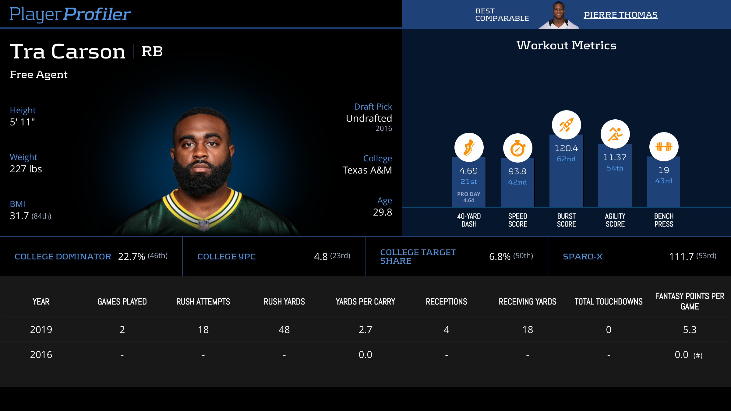 | 8 | NYG | 33.3% | 12 (1 rz) | 4 | -- | -- | 34 | -- | 3.4 (##52) |