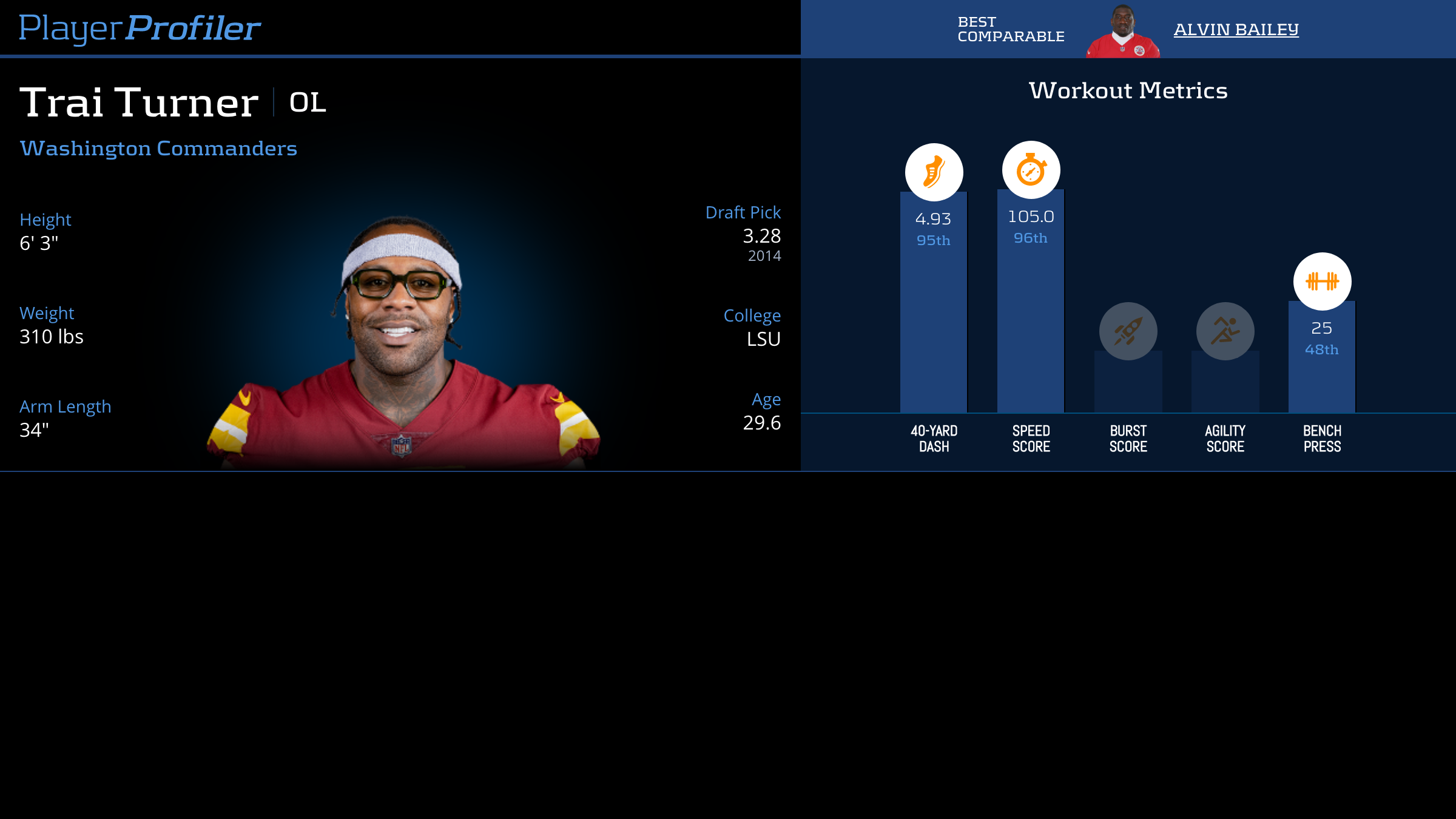 Download all Trai Turner advanced stats and metrics with Data Analysis.