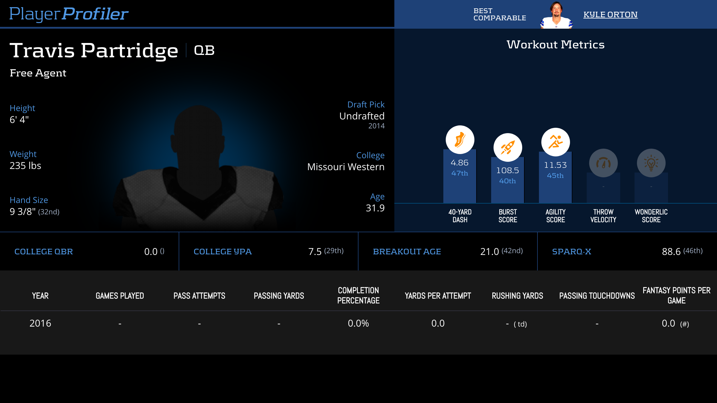 | Year Year | Games Games | Pass Attempts Pass Atts | Passing Yards Pass Yds | Yards Per Attempt YPA | Completion Percentage Comp % | Passing Touchdowns Pass TDs | Rushing Yards Rush Yds | Age Age | School School |