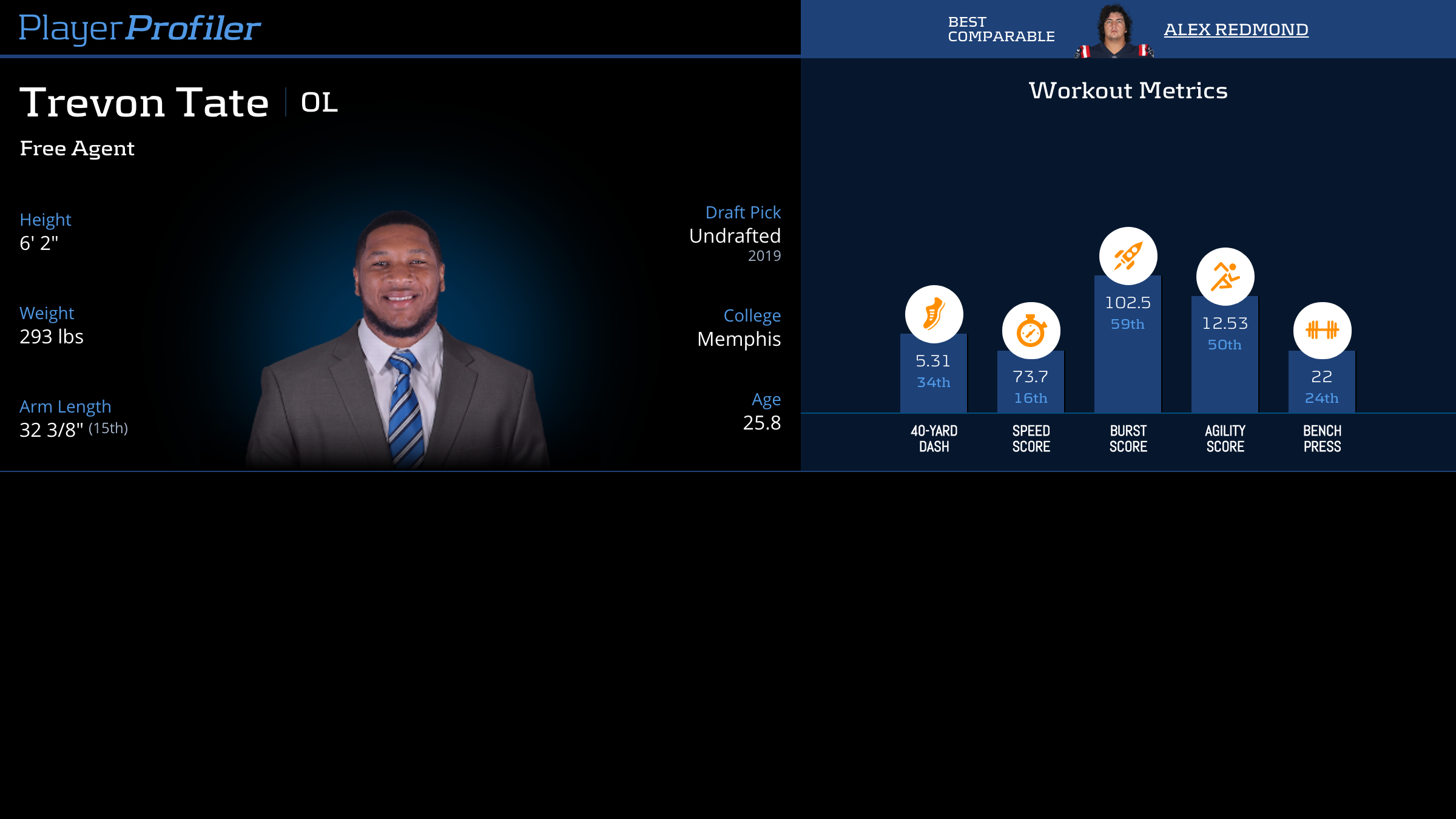 Download all Trevon Tate advanced stats and metrics with Data Analysis.