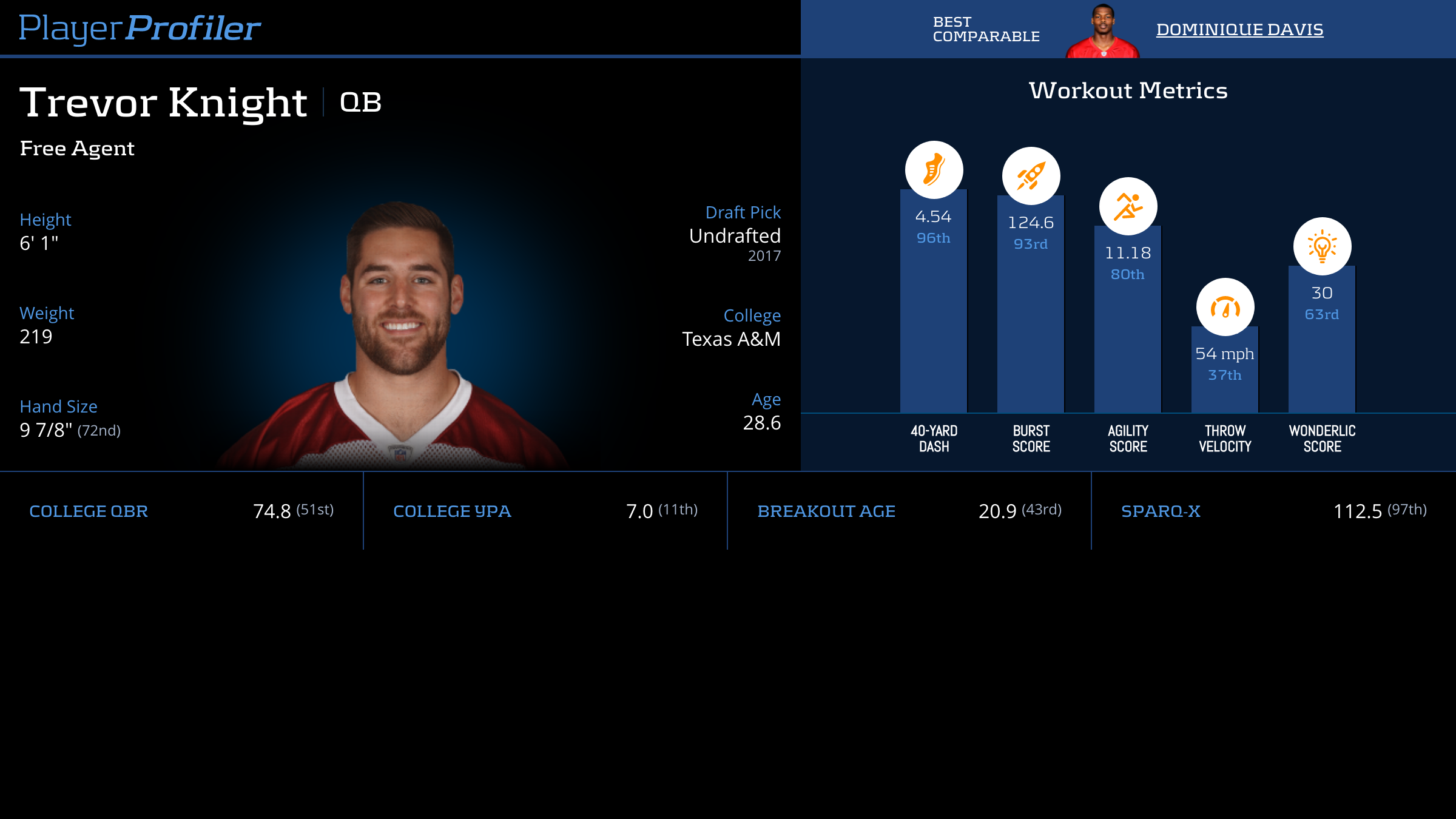 | Year Year | Games Games | Pass Attempts Pass Atts | Passing Yards Pass Yds | Yards Per Attempt YPA | Completion Percentage Comp % | Passing Touchdowns Pass TDs | Rushing Yards Rush Yds | Age Age | School School |