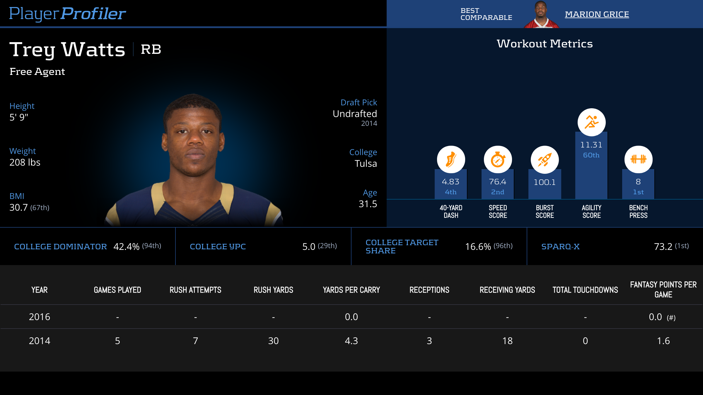 | 9 | SF | 2.0% | -- | -- | 1 tgts | 1 | 6 | -- | 1.6 |