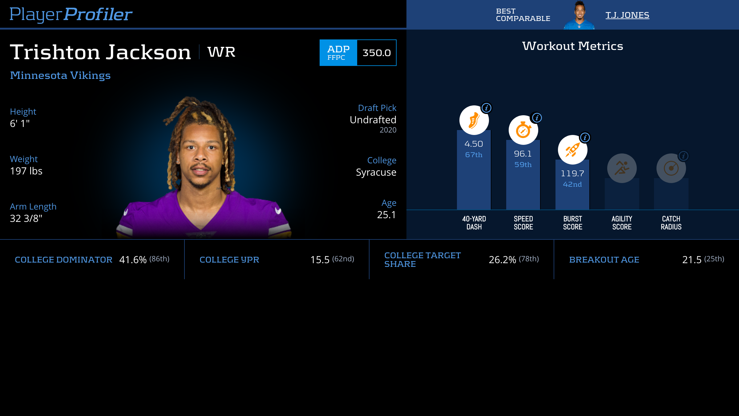 Box score statistics such as targets, yards, touchdowns, and fantasy points per target are updated the next day. Advanced stats and metrics are updated later in the week during the NFL season.