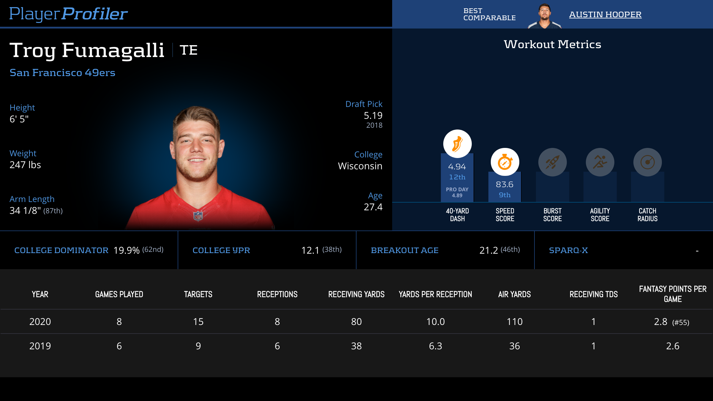 Box score statistics such as targets, yards, touchdowns, and fantasy points per target are updated the next day. Advanced stats and metrics are updated later in the week during the NFL season.