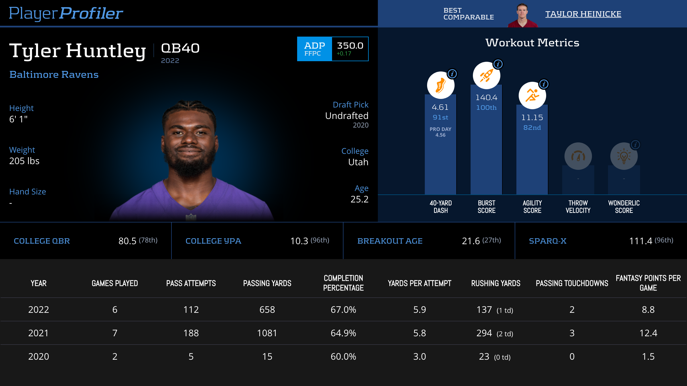 | 8 | CHI | 22 | 77.3% | 186 (209 air) | 8.5 | 1 | 53 | -- | 16.7 (#16) |