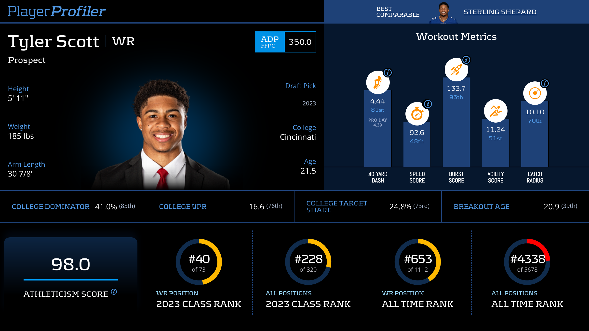 | 2 | HOU | Derek Stingley | 4.3% | 1 (2.3% rate) | -- | -- | -- | 0.0 (#114) |