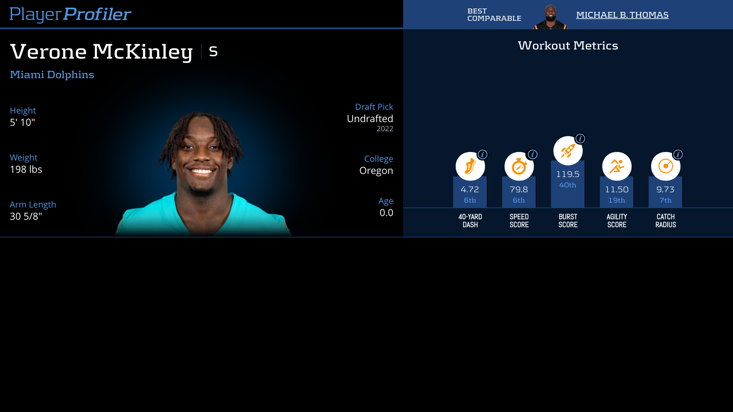 Download all Verone McKinley advanced stats and metrics with Data Analysis.