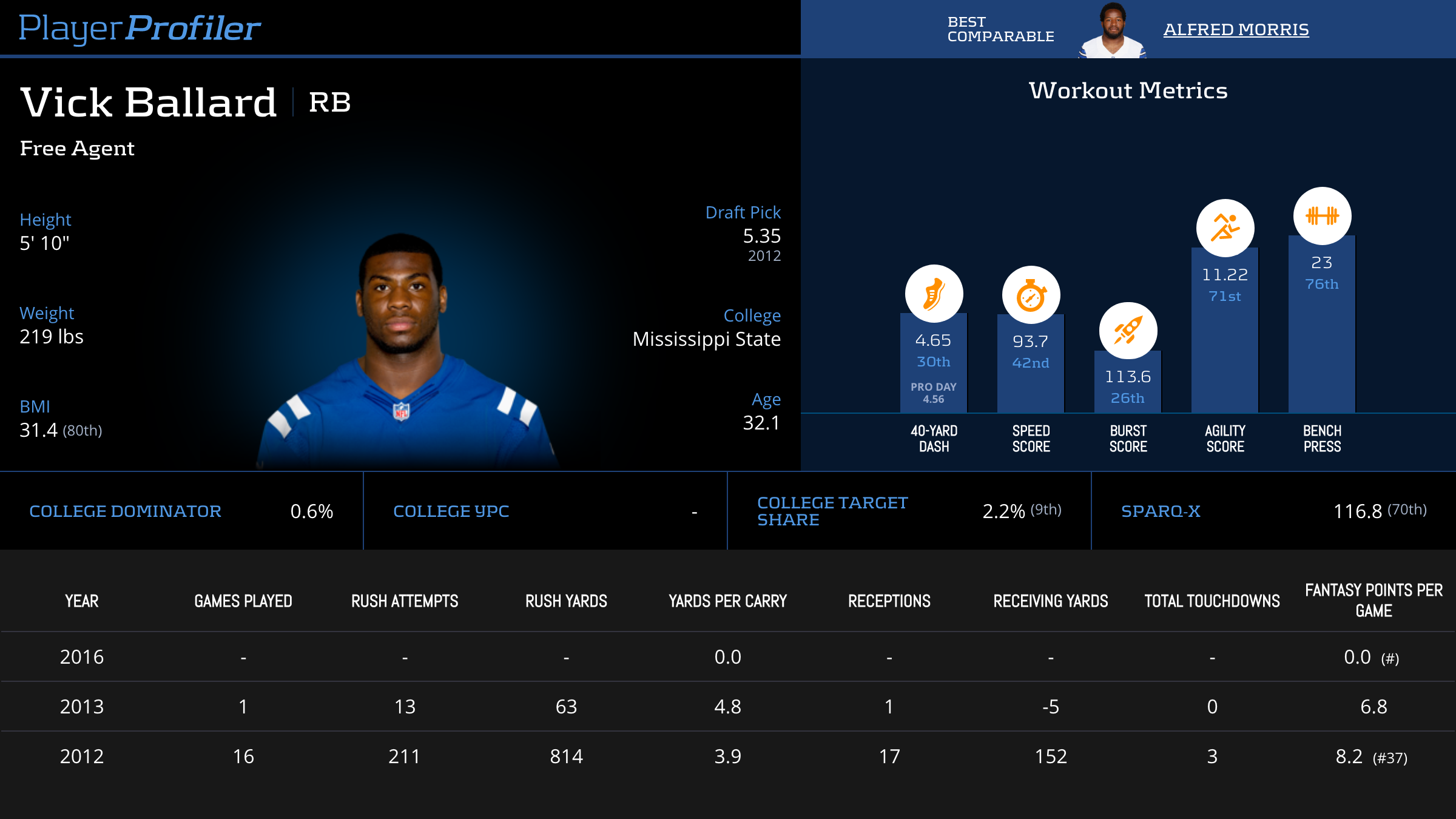 | Year Year | Games Games | Rush Attempts Rush Atts | Rushing Yards Rush Yrds | Total Touchdowns TDs | Receptions Rec | Receiving Yards Rec Yrds | Target Share Tgt Share | Age Age | School School |