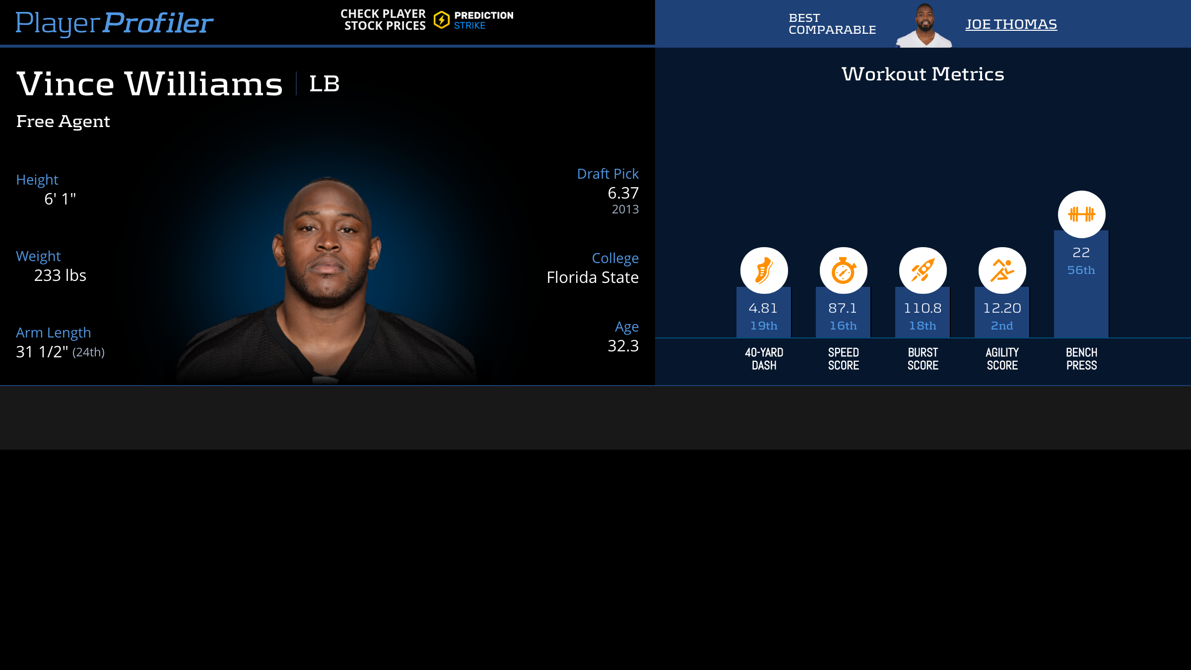 Value Over Stream: Valuation scheme calculates a player's fantasy pts/game over the average waiver wire replacement in standard fantasy league formats during either the current season (or previous year during the offseason) and adjusts for positional bust rates. VOS rank in parenthesis spans all positions, enabling player comparisons across QB's, RB's, WR's, and TE's.