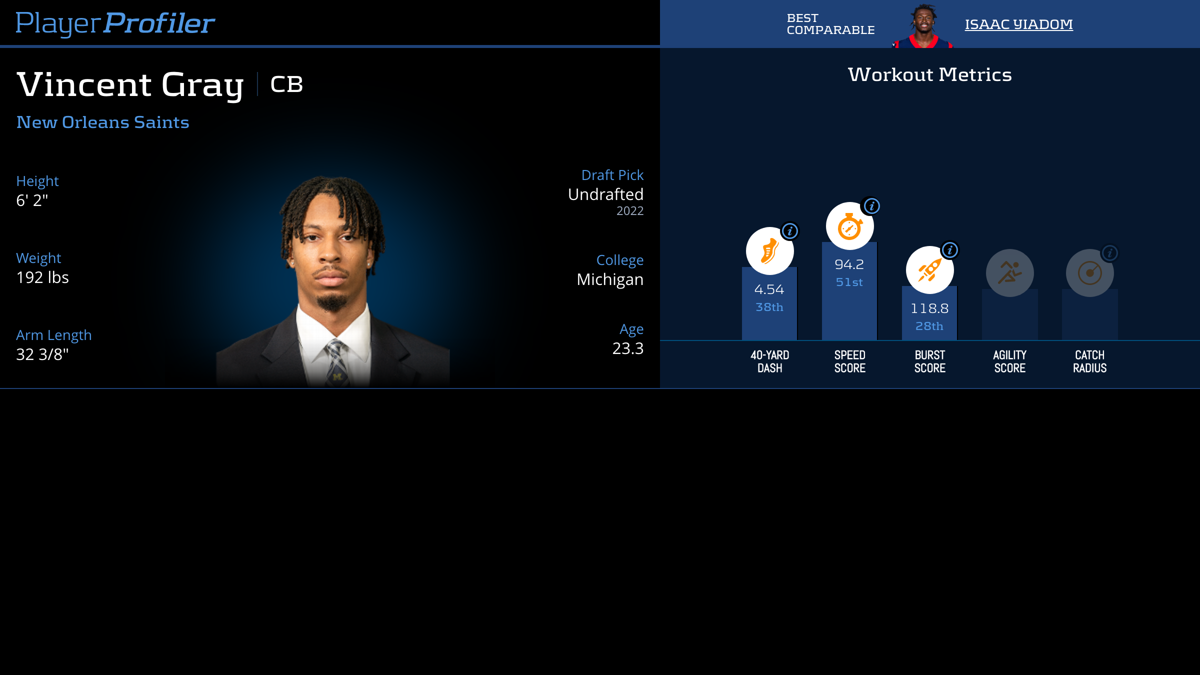 Download all Vincent Gray advanced stats and metrics with Data Analysis.