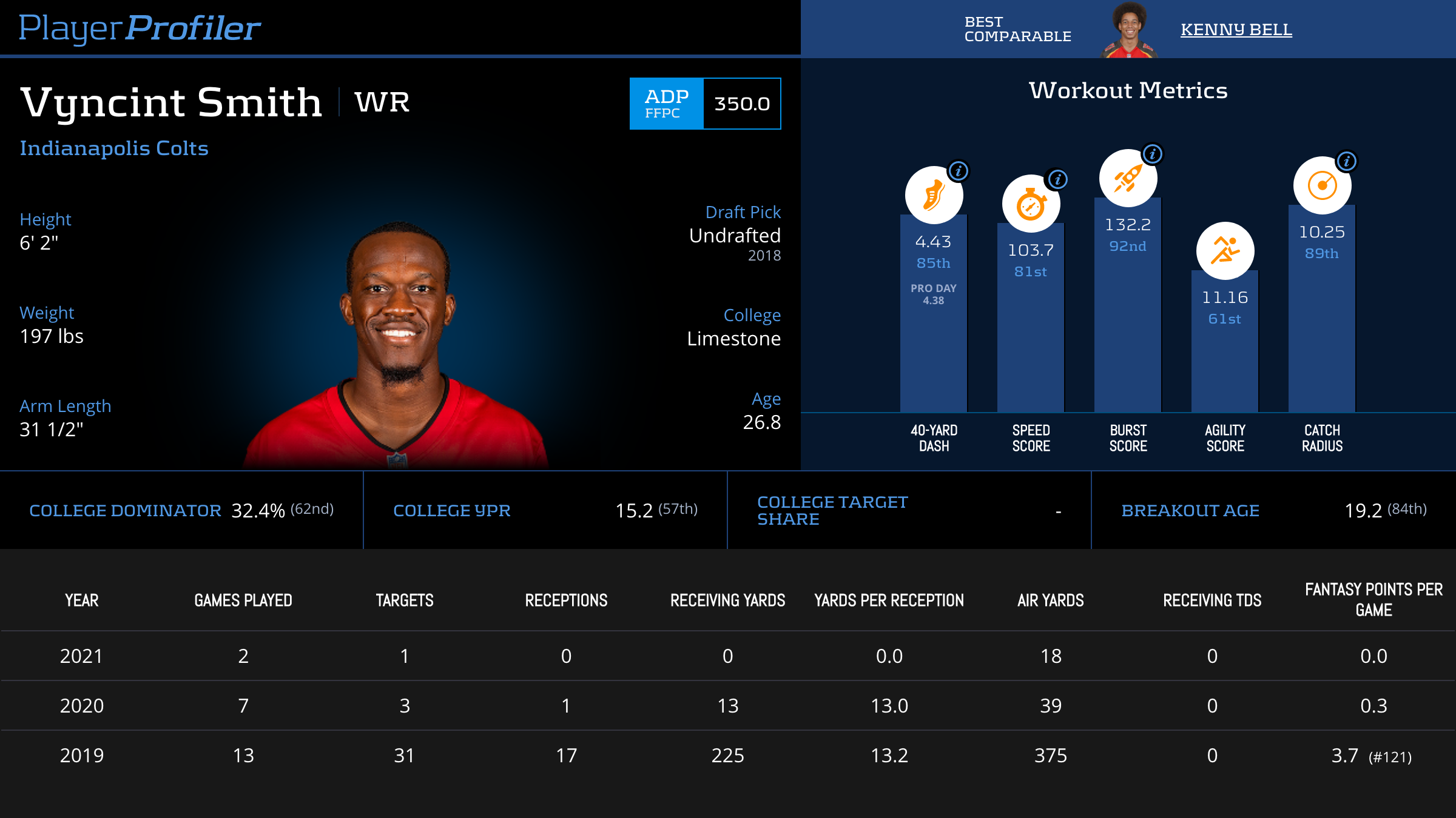 | Year Year | Games Games | Receptions Recs | Receiving Yards Rec Yds | Target Share Tgt Share | Catch Rate Catch Rate | Receiving Touchdowns Rec TDs | Special Teams Yards Special Teams | Age Age | School School |