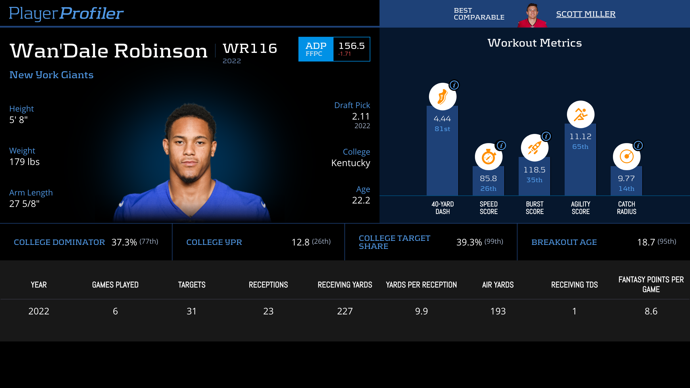 | 15 | WAS | Noah Igbinoghene | 98.5% | 43 (100.0% rate) | 10 (3 rz) | 5 (1 tds) | 54 (105 air) | 16.4 (#17) |