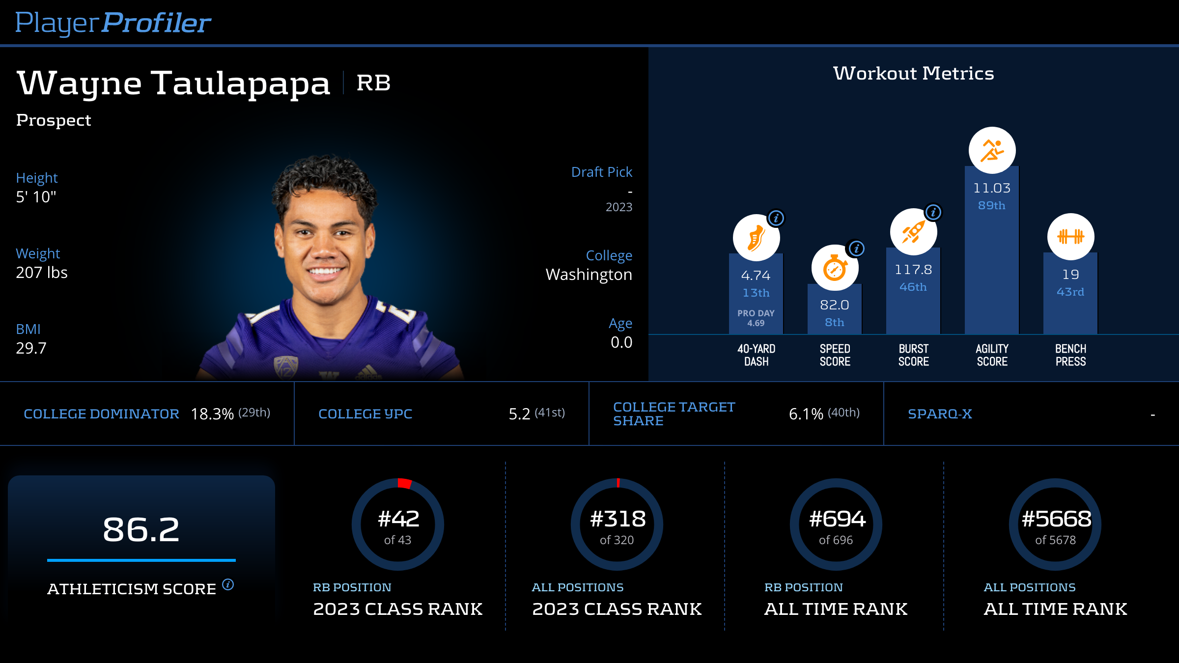 Player Popularity Index (PPI) ranks PlayerProfiler page views over the last 30 days. For example, the No. 1 PPI player page is the most frequently visited page in recent weeks.