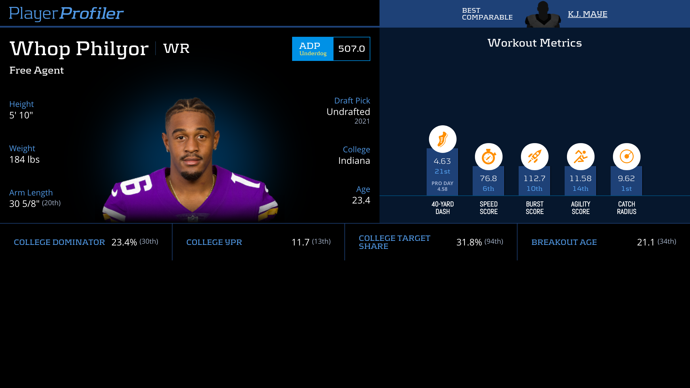 | Year Year | Games Games | Receptions Recs | Receiving Yards Rec Yds | Target Share Tgt Share | Catch Rate Catch Rate | Receiving Touchdowns Rec TDs | Special Teams Yards Special Teams | Age Age | School School |
