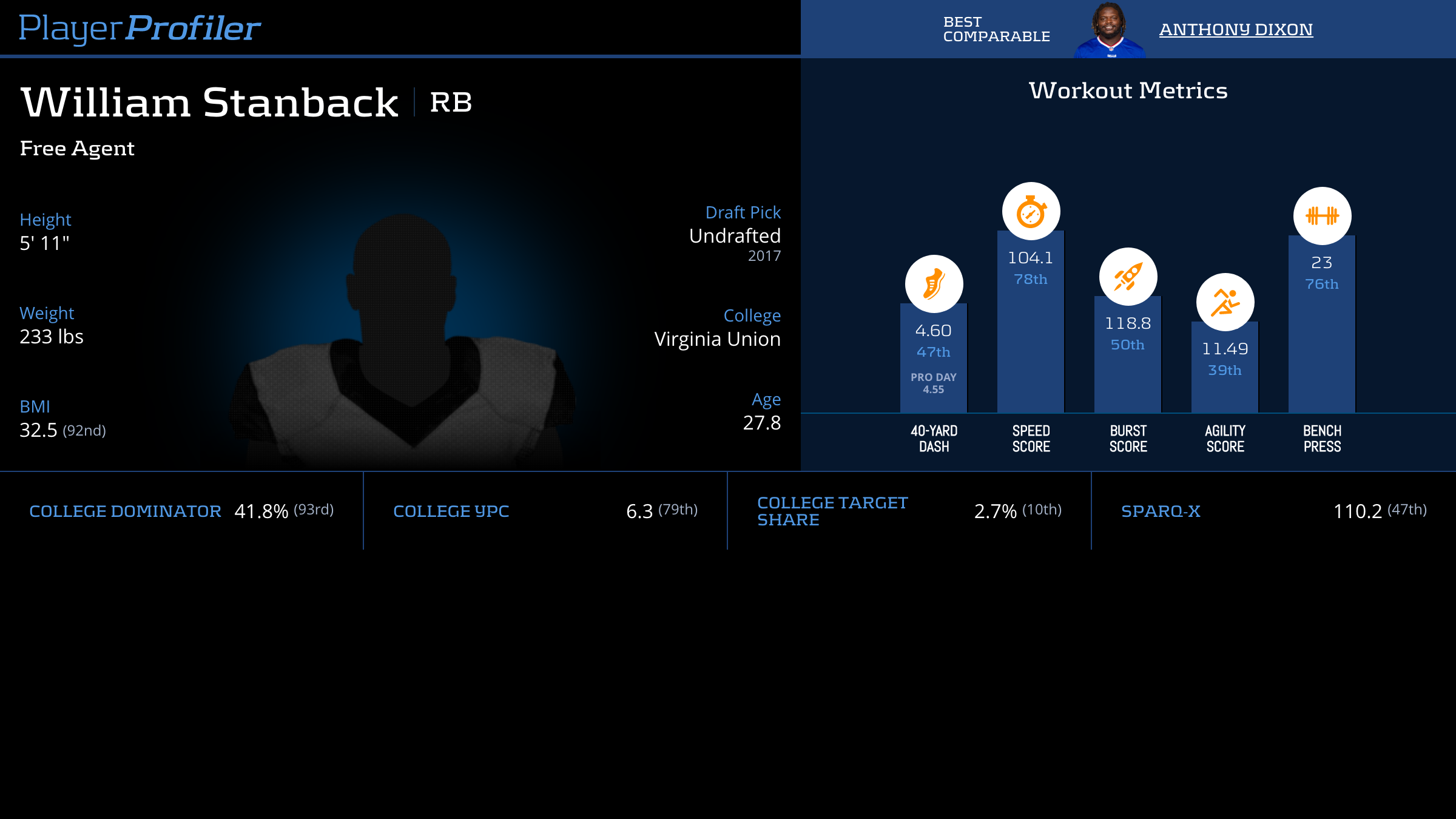 | Year Year | Games Games | Rush Attempts Rush Atts | Rushing Yards Rush Yrds | Total Touchdowns TDs | Receptions Rec | Receiving Yards Rec Yrds | Target Share Tgt Share | Age Age | School School |