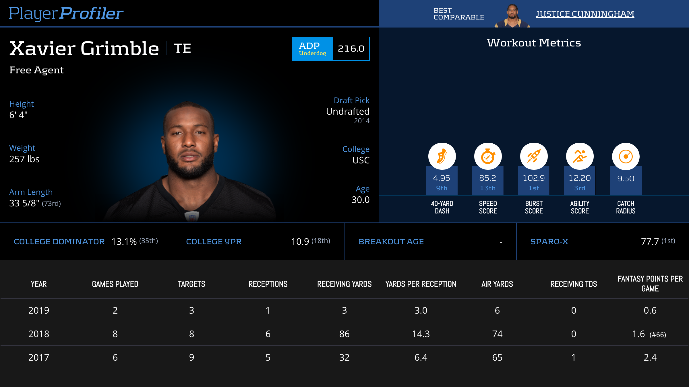 Box score statistics such as targets, yards, touchdowns, and fantasy points per target are updated the next day. Advanced stats and metrics are updated later in the week during the NFL season.