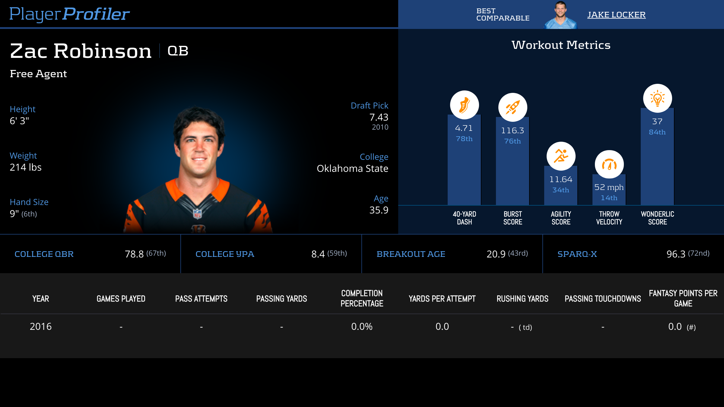 | Year Year | Games Games | Pass Attempts Pass Atts | Passing Yards Pass Yds | Yards Per Attempt YPA | Completion Percentage Comp % | Passing Touchdowns Pass TDs | Rushing Yards Rush Yds | Age Age | School School |