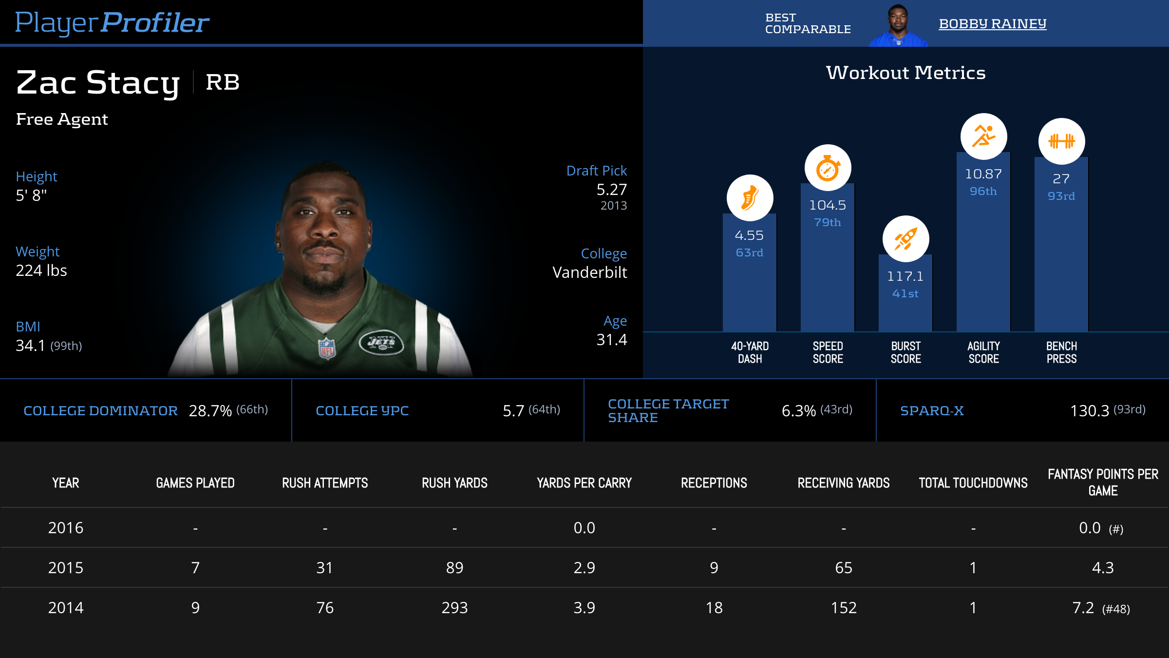 | 7 | NE | 45.6% | 7 | -- | 1 tgts | 1 | 30 | -- | 4.0 |