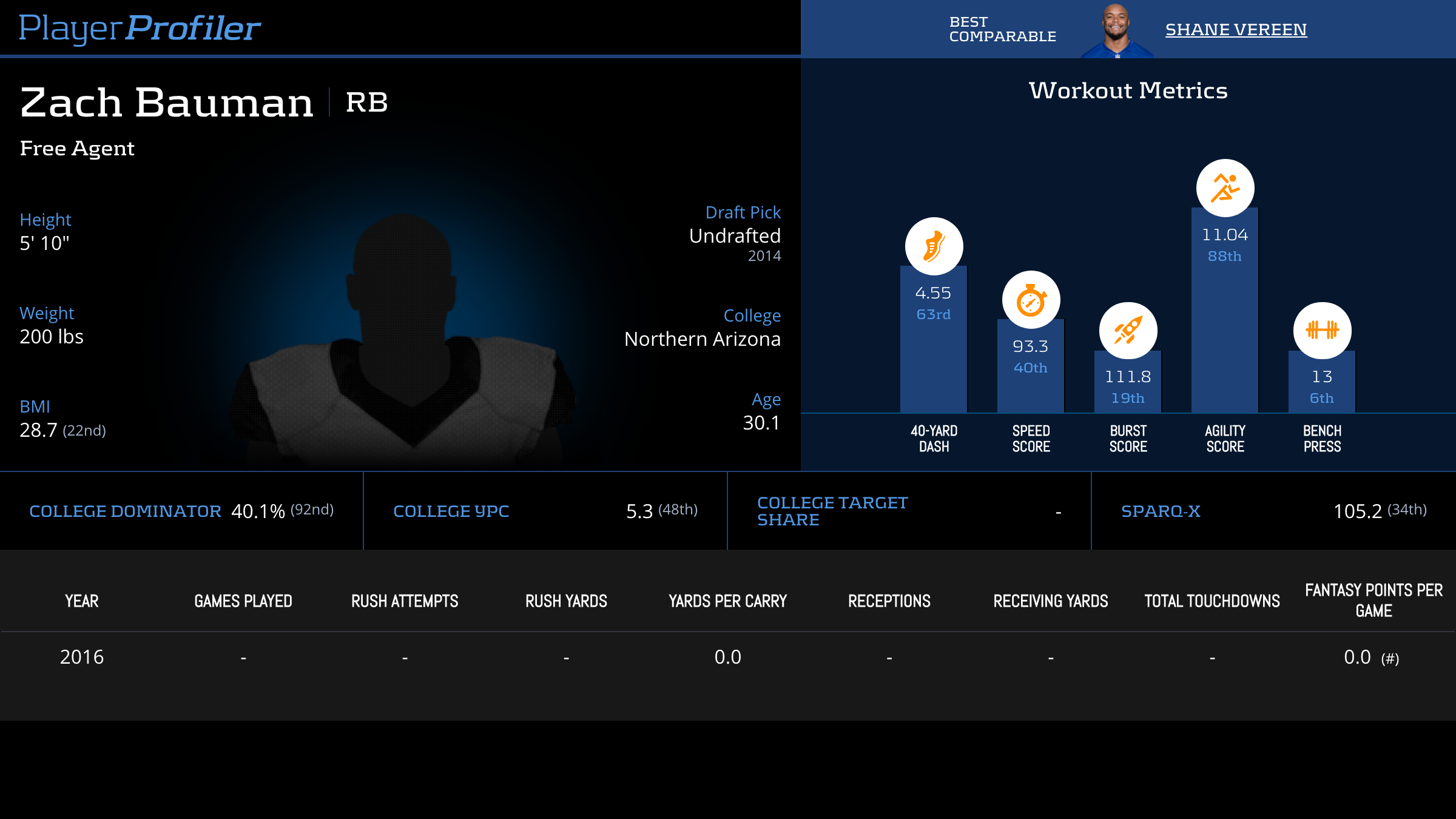 Year Games Atts Rush Yds YPC Rec Rec Yds TD Fantasy Pts/Game