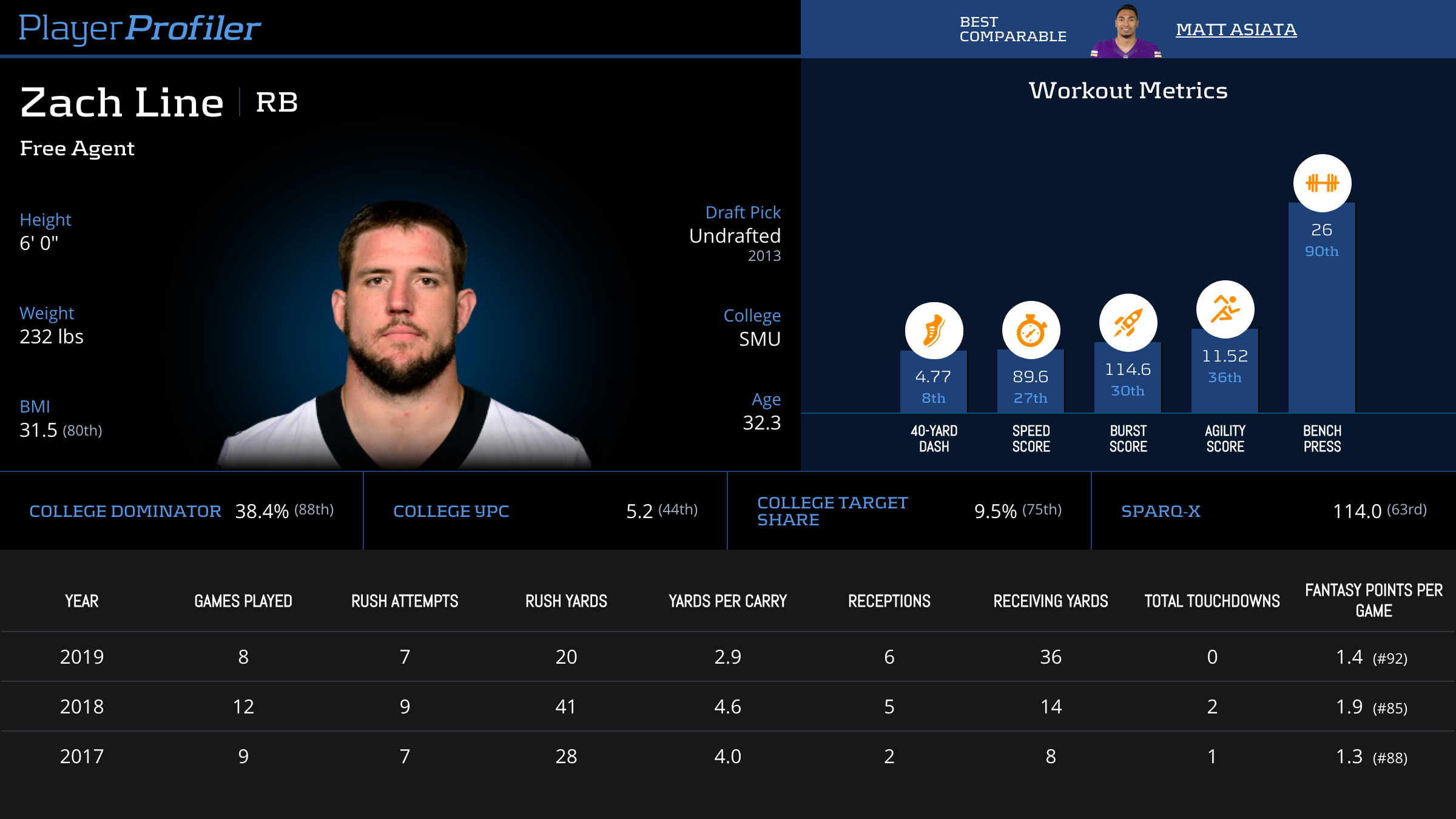 | Year Year | Games Games | Rush Attempts Rush Atts | Rushing Yards Rush Yrds | Total Touchdowns TDs | Receptions Rec | Receiving Yards Rec Yrds | Target Share Tgt Share | Age Age | School School |