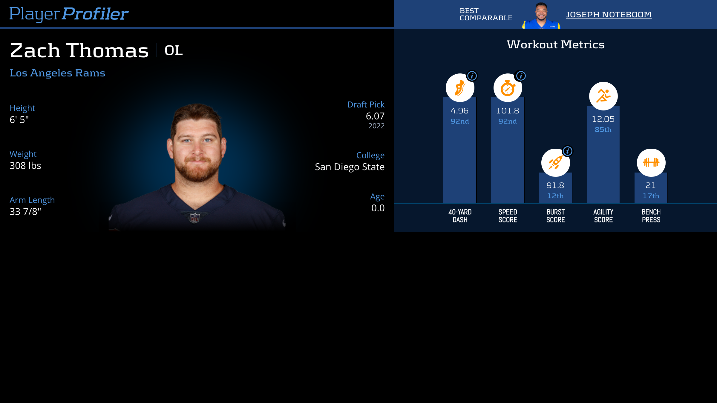 Download all Zach Thomas advanced stats and metrics with Data Analysis.