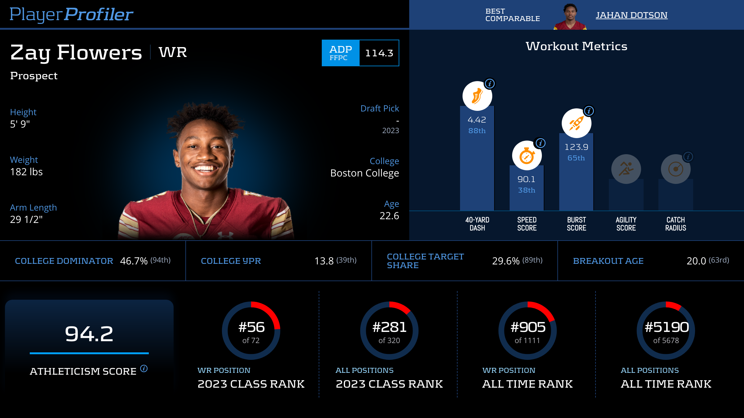 | Year Year | Games Games | Receptions Recs | Receiving Yards Rec Yds | Target Share Tgt Share | Catch Rate Catch Rate | Receiving Touchdowns Rec TDs | Special Teams Yards Special Teams | Age Age | School School |